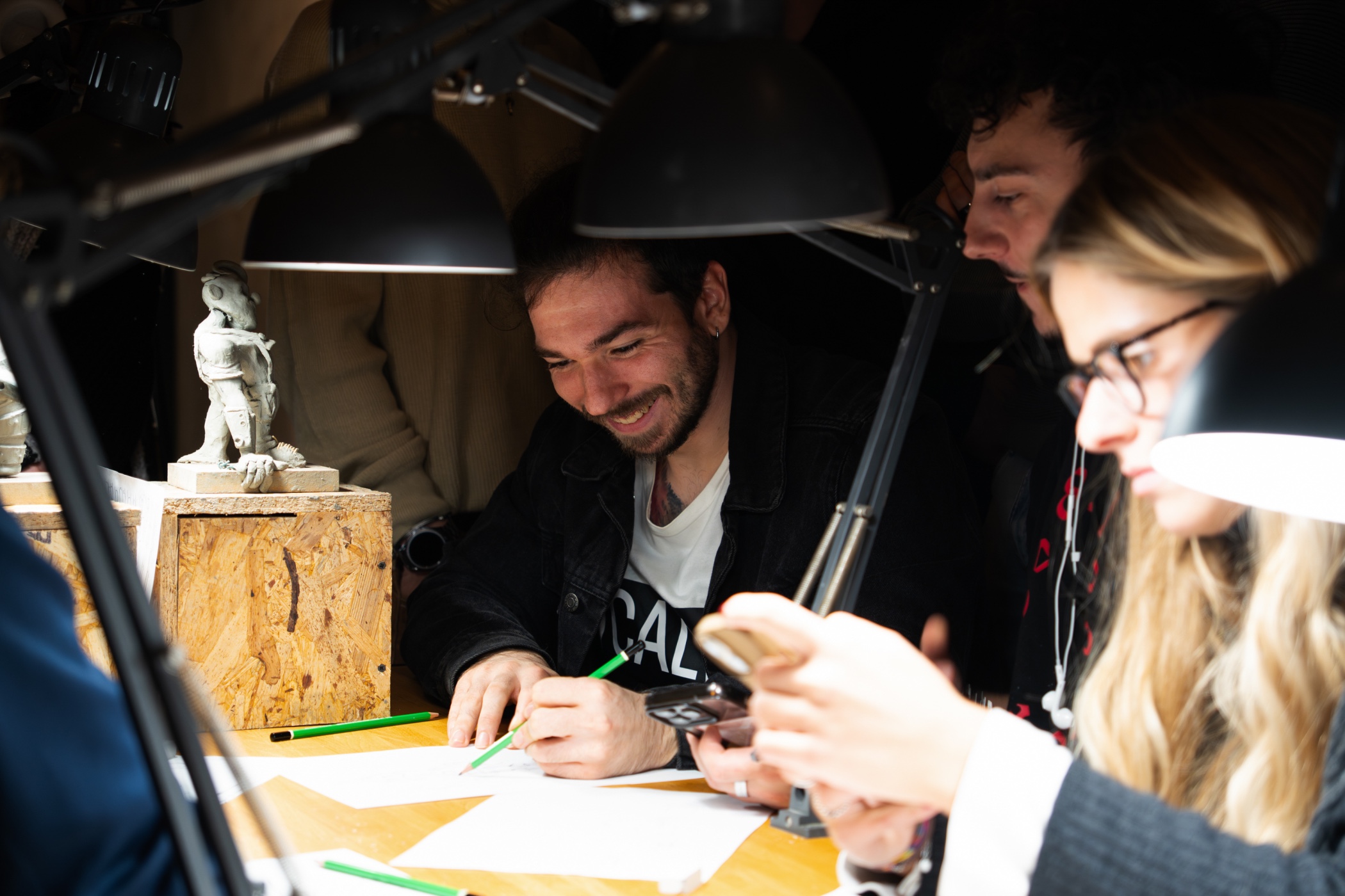 The maquettes are plasticine sculptures that the CG Master's students making during pre-production week and the Concept Art students making during Character Design week.